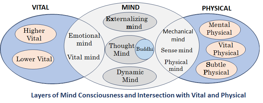 The mind also intersects with other layers – vital and physical planes. Sri Aurobindo distinguished mind consciousness based on this interaction with physical or vital.