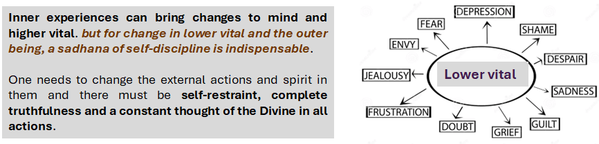 One is influenced by experiences of lower vital and can enter in the wrong movement if he takes these experiences as truth. The mind gets turbulent, and one finds it difficult to get rid of it as lower vital forces are in control.