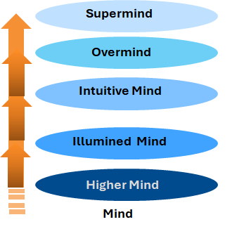 Above mind, there are higher ranges of Consciousness – Higher mind, Illumined mind, Intuitive mind and Overmind.