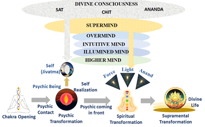 Once Psychic being opens, next step is to connect with Self and experience the Divine Consciousness, above and everywhere. The Triple Transformation can be achieved when both Psychic being and Self are connected.